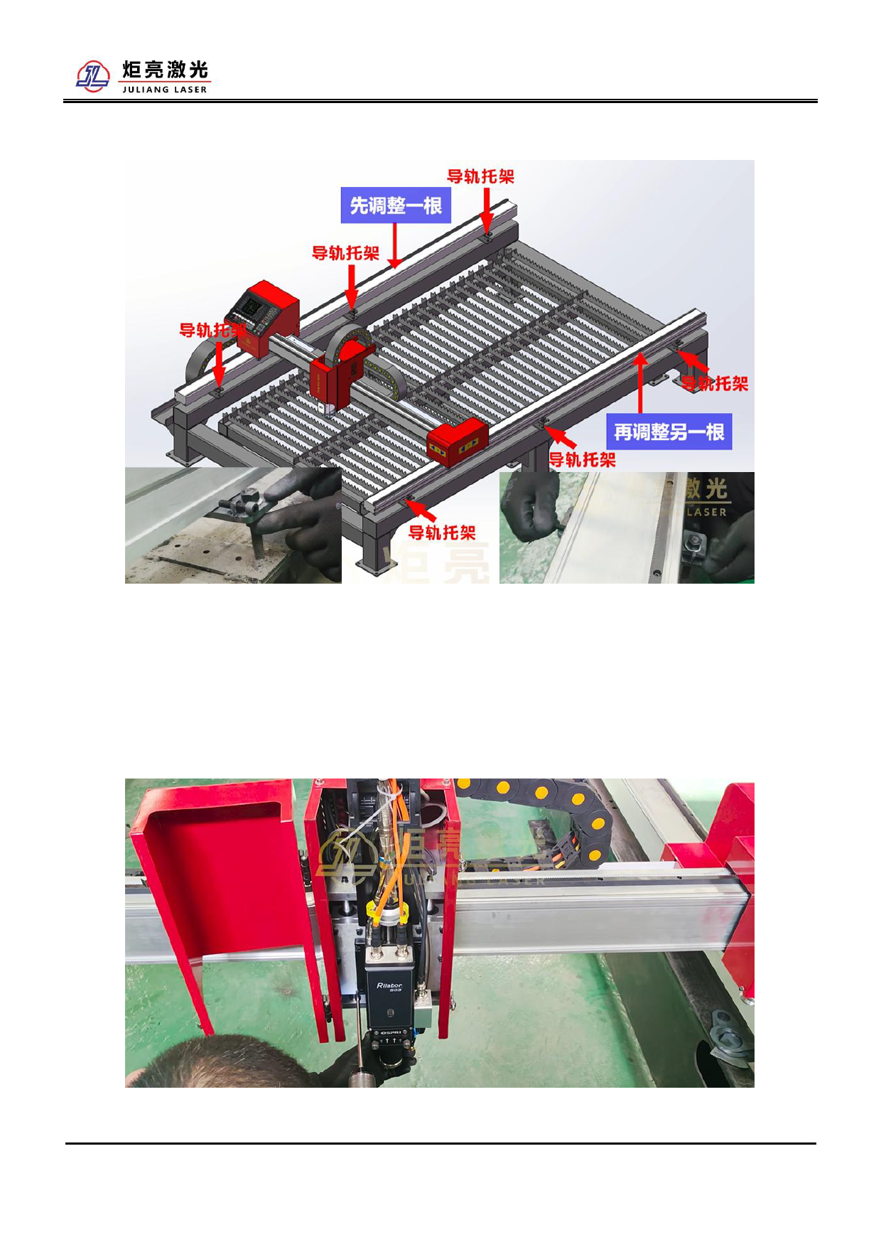 a. 通过调整导轨托架使两根导轨达到水平和平行以及前后的中心距相同。先把一侧的导轨调