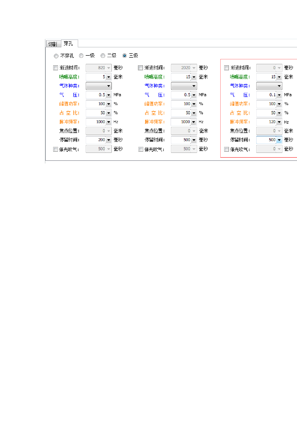 停光吹气一定要打钩,有助于吹掉穿孔时产生的熔渣。