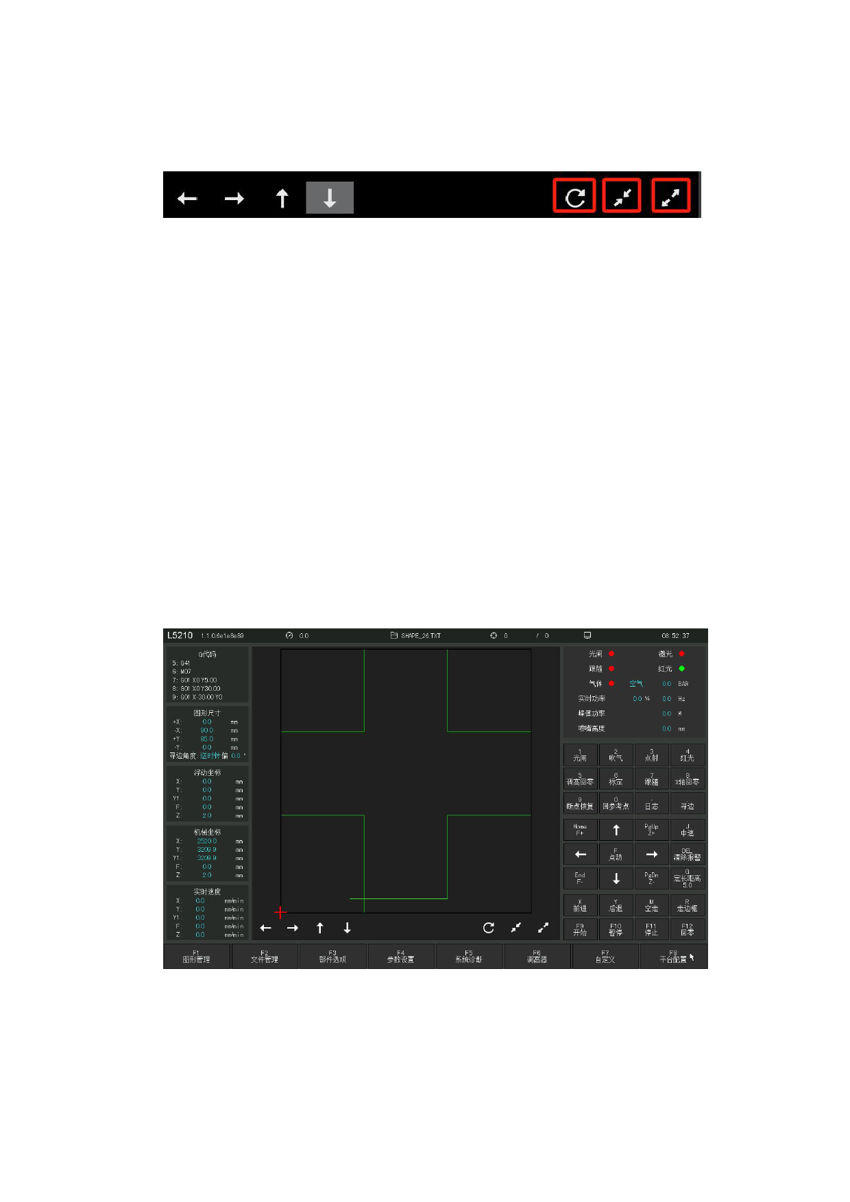 加工开始后,切割界面的 图形放大缩小按钮可以进行随意的放大缩小,“动态放大”,