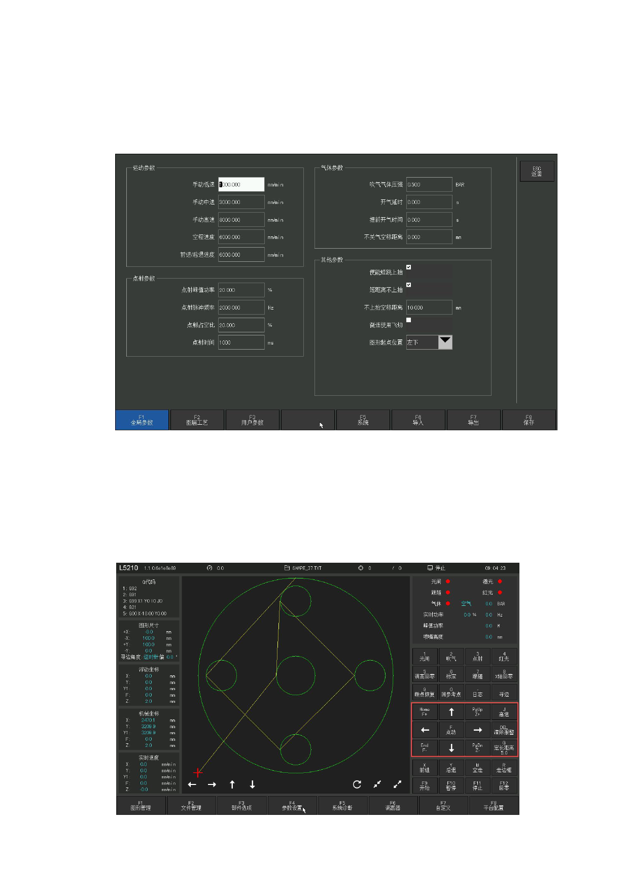 手动状态时的速度由F4参数设置-F1全局参数中的手动移车速度参数控制。手动移动时