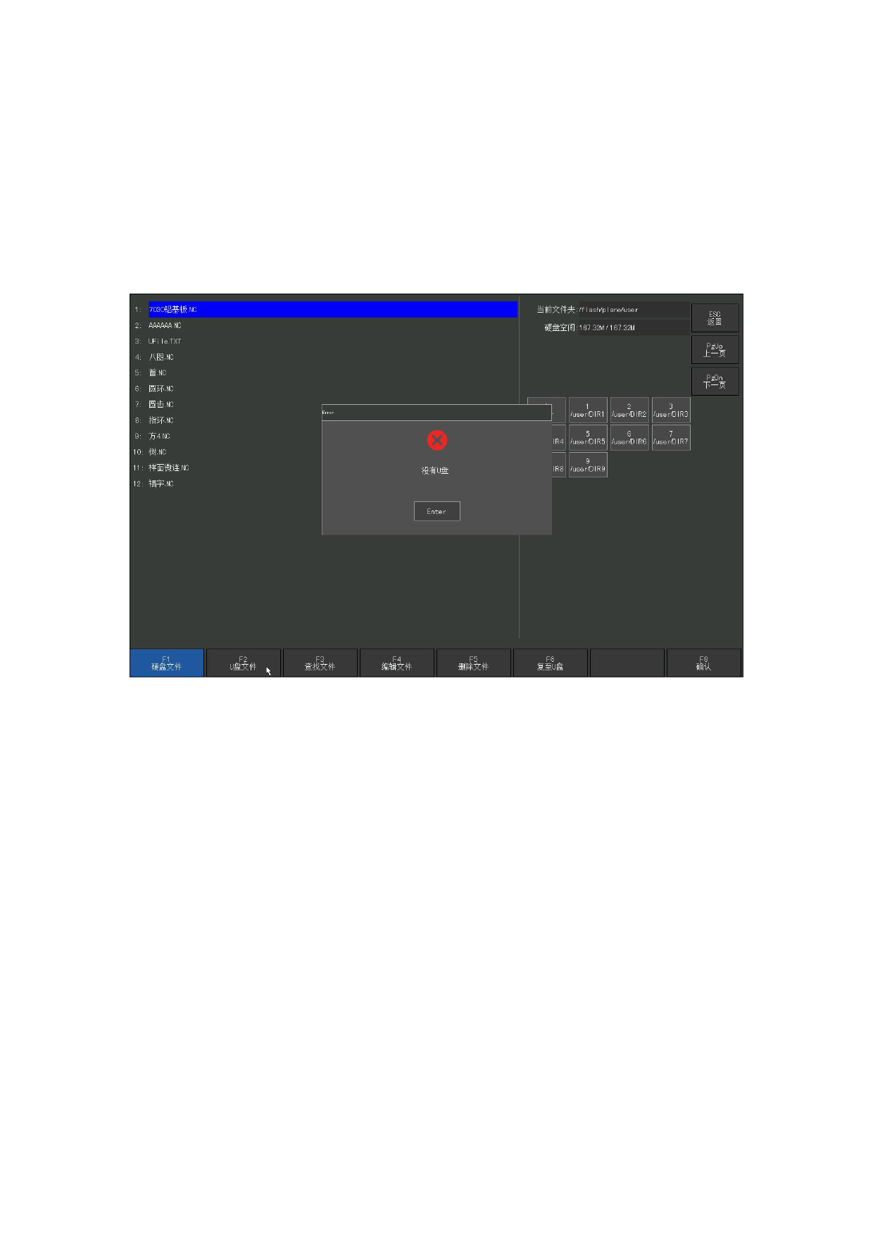按【F6 复至优盘】,如果当前光标处是 G 代码文件,则把当前文件/文件夹复制到外部 U 盘,