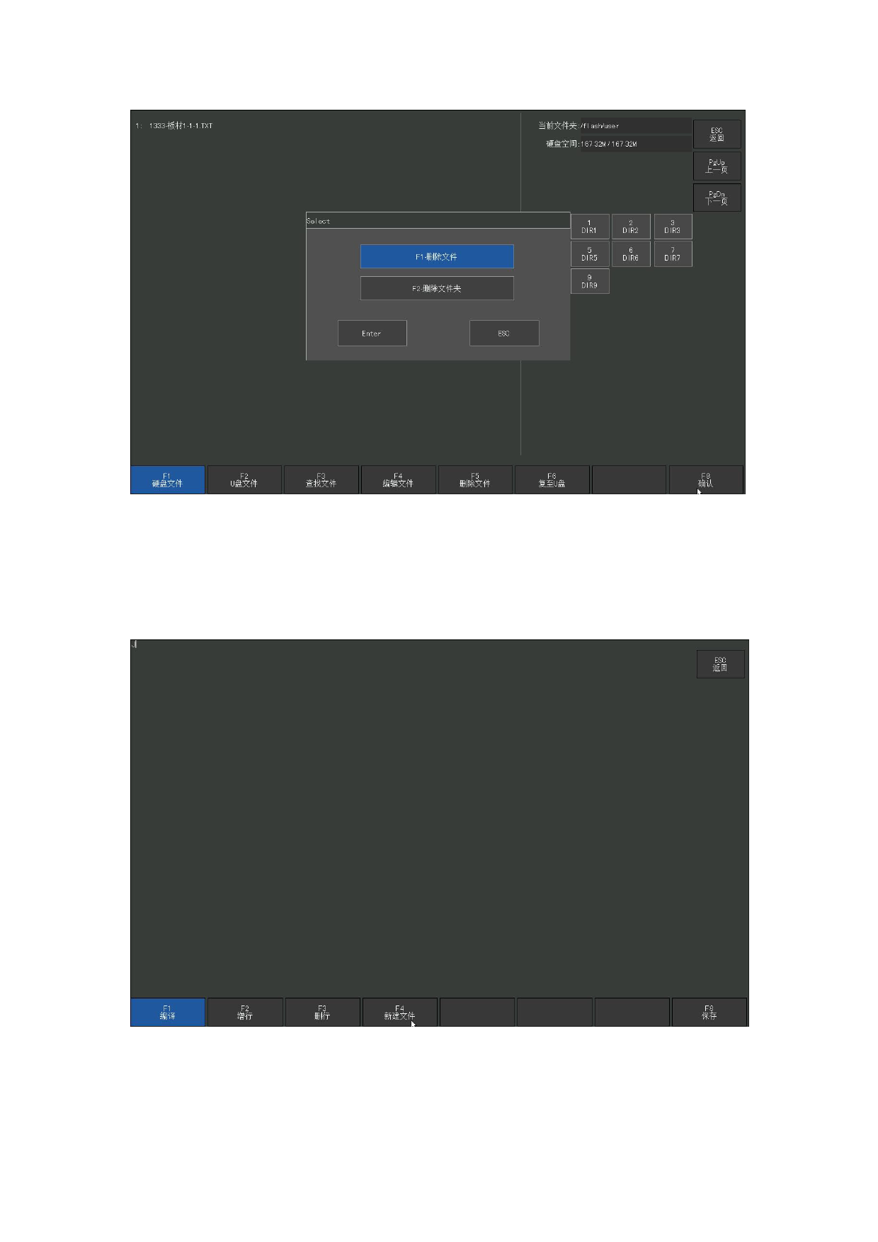 在代码编辑界面(参见 6.4 节)。按【F4】新建文件,可以手工建立文件。