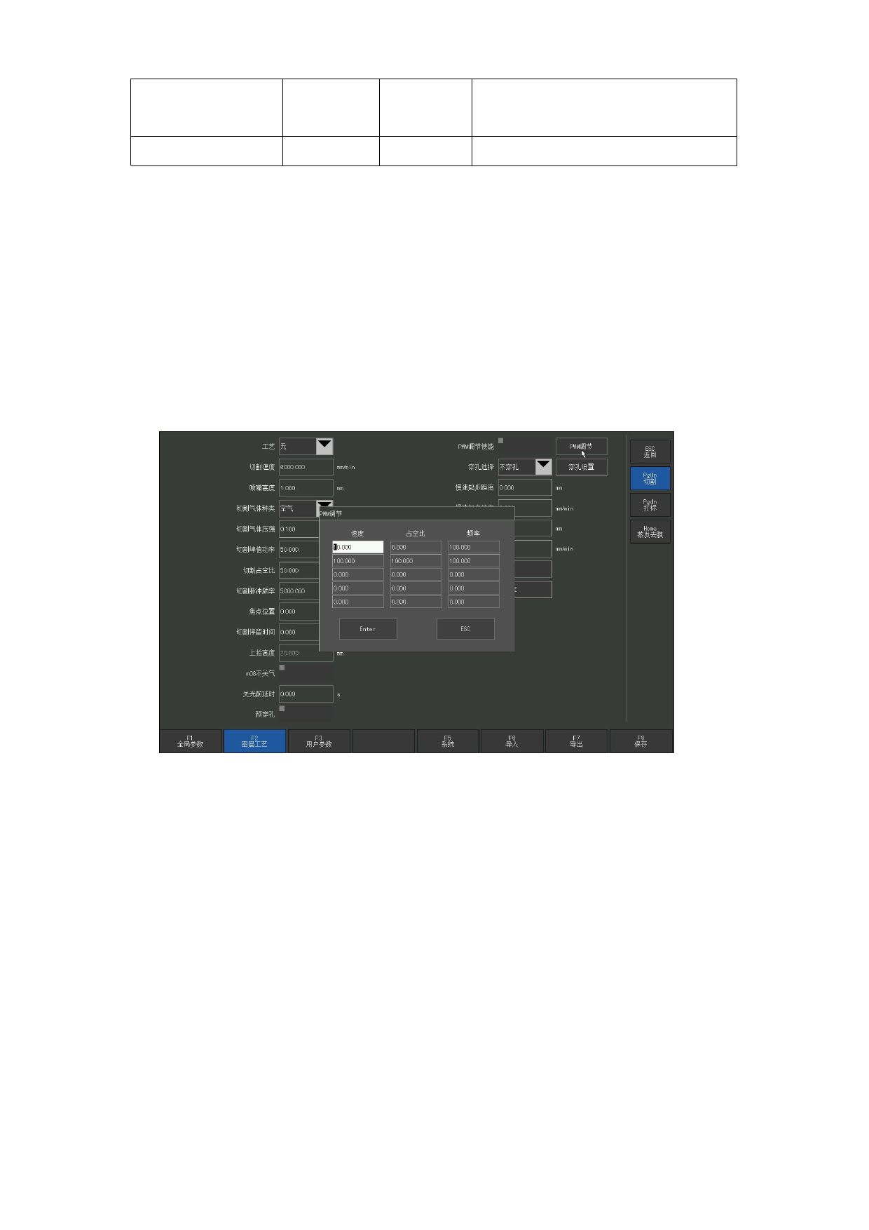 如果要根据速度来实时调节实时功率,首先需要将“PWM 调节使能”启用。在进入