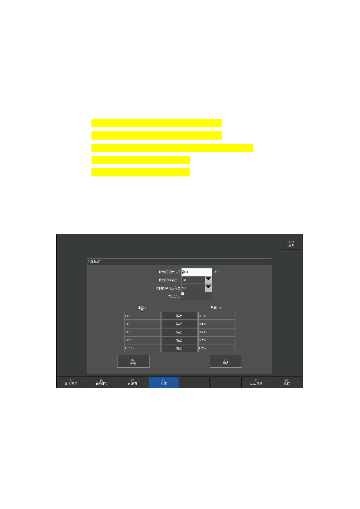 比例阀最大气压:设置比例阀的最大输出气压值。
