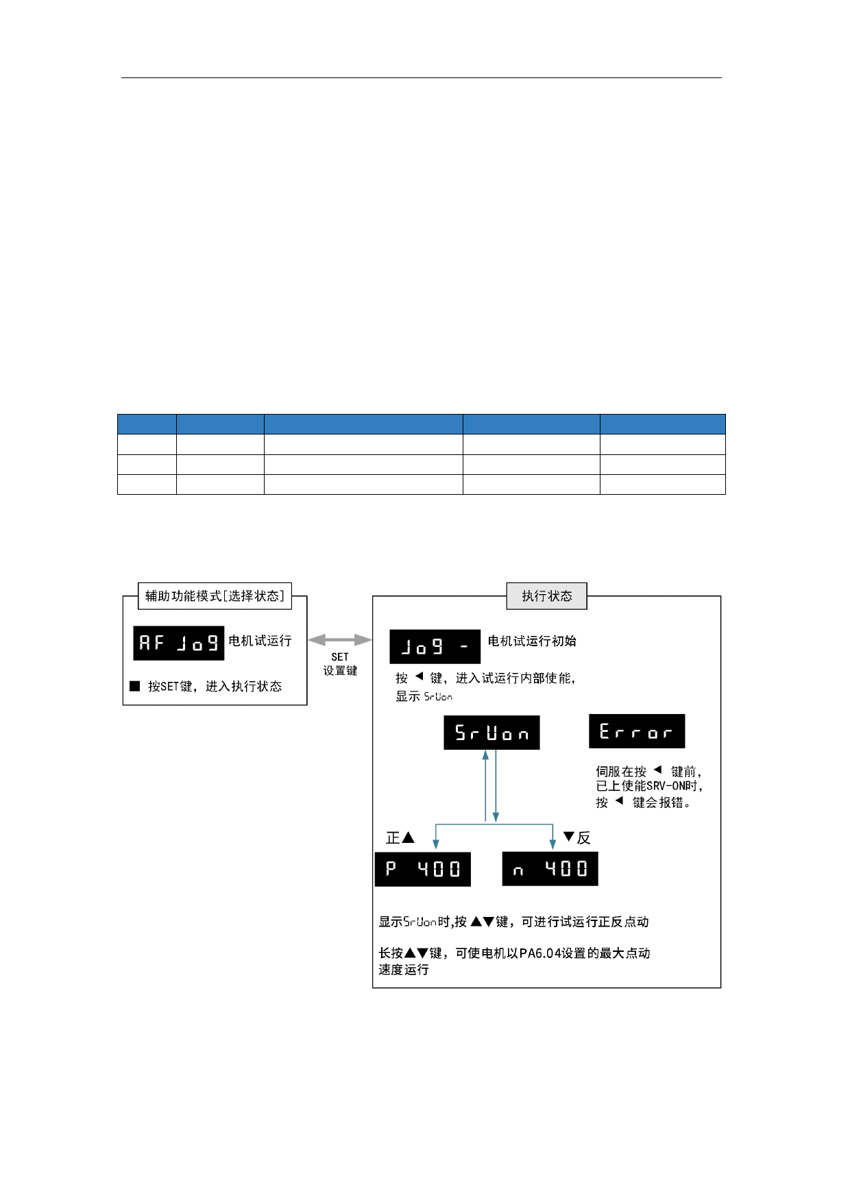 ■ 试运行结束后,按 SET 键回到选择状态,同时试运行内部使能关闭。