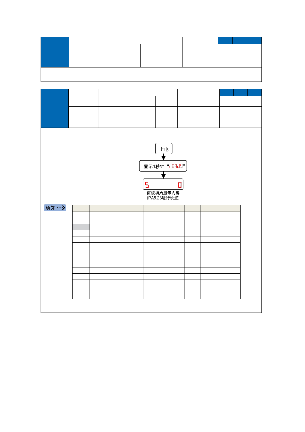 电源接通后初始状态时,选择前面板 5 段 LED 所显示的数据类型。