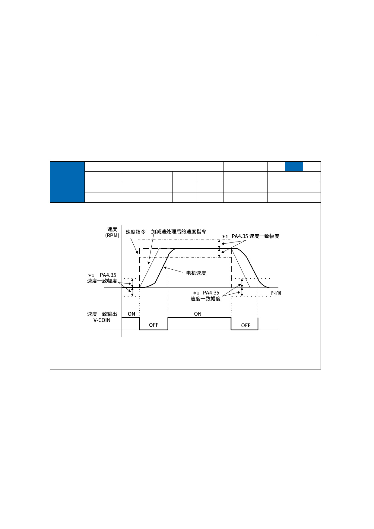 部的加减速处理前的速度指令与电机速度的差在参数 PA4.35(速度一致幅度设定)以内,则