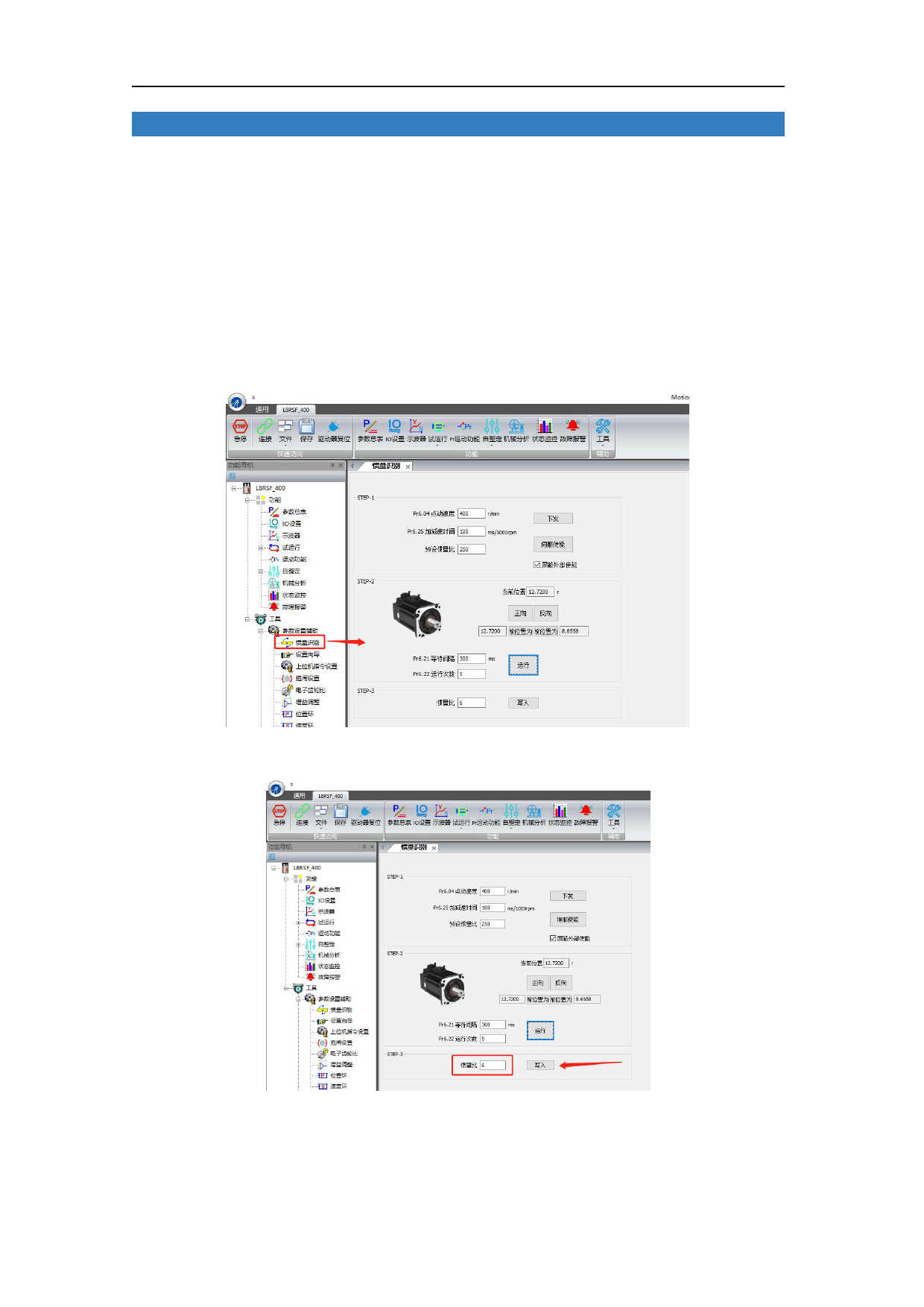 调试软件惯量识别使用方法及步骤: