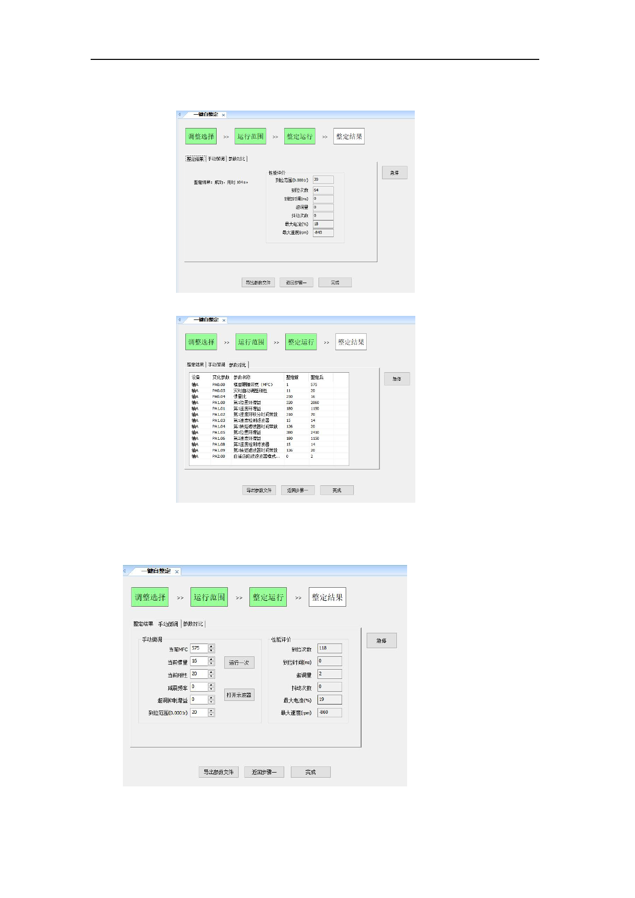 5.整定完成后会跳到整定结果界面,能够显示整定结果、整定前后参数对比。