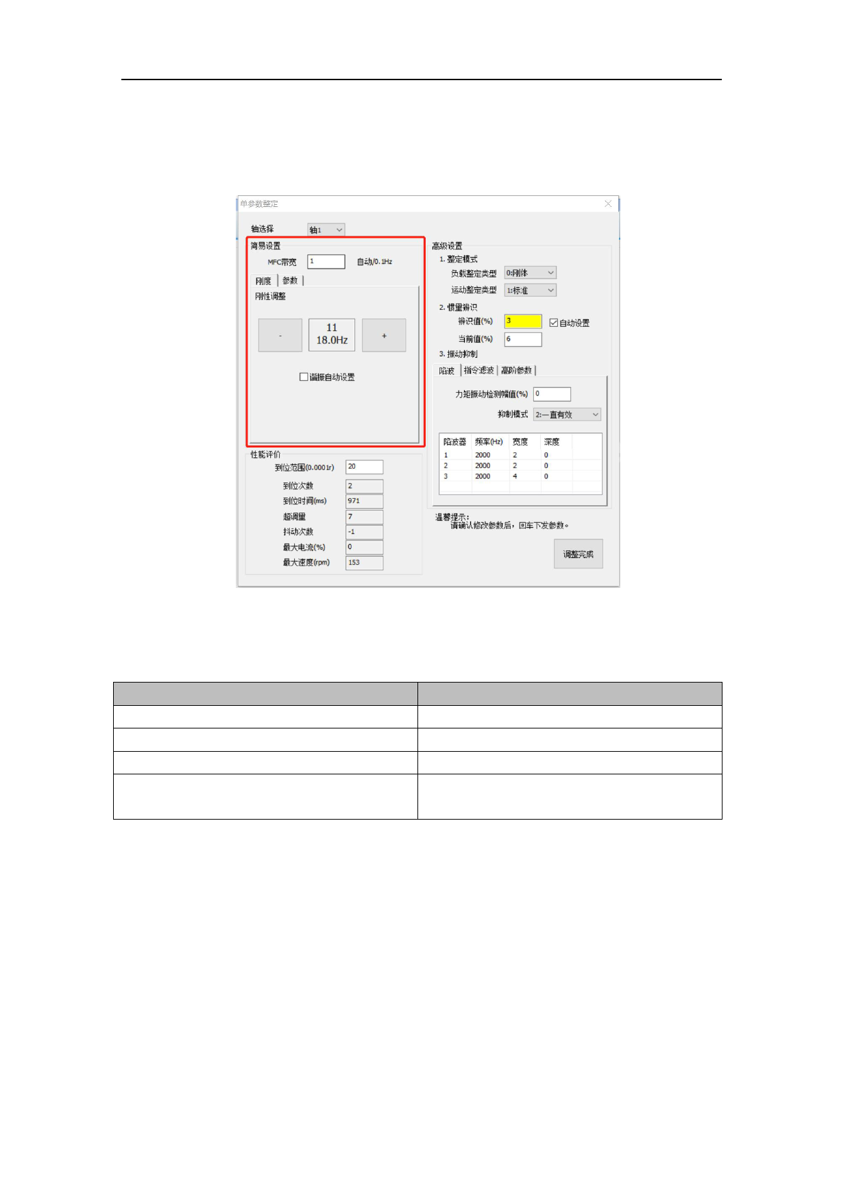 谐振自动设置:谐振自动设置功能勾选后为当前刚性状态下循环检测震动,没检测到震动会恢复