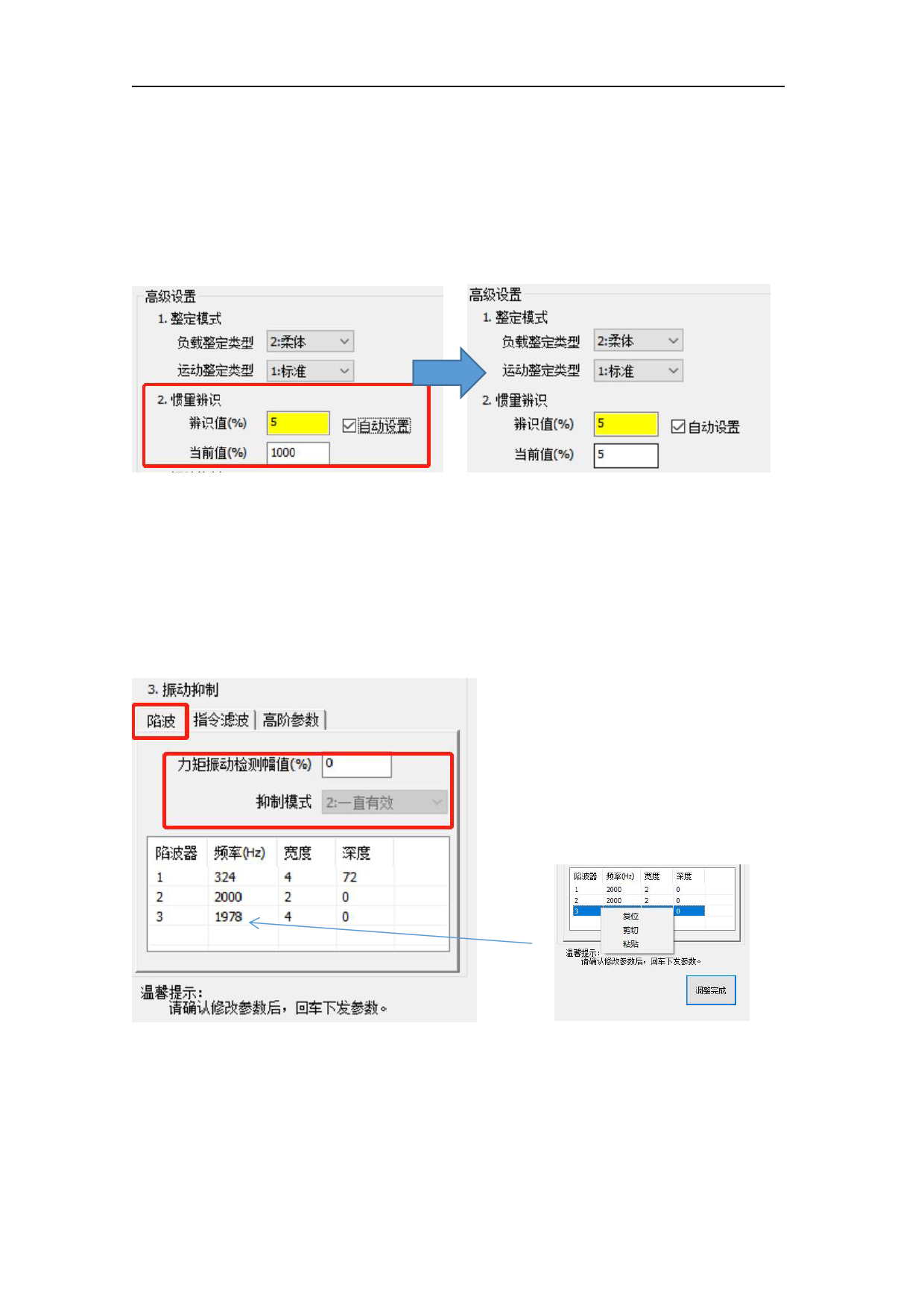 未勾选则不同步辨识值,可手动设置当前惯量比,回车下发。