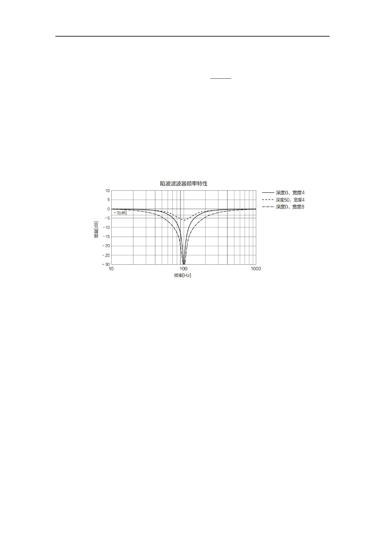 陷波器深度等级为 0 时,在中心频率处,输入完全被抑制;陷波器深度等级为 100 时,