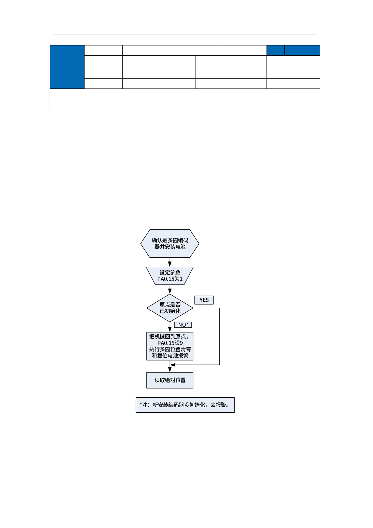 (2) 然后设置开启绝对值功能 PA0.15=1;如果是初次安装,此时驱动器会有 Er153 警