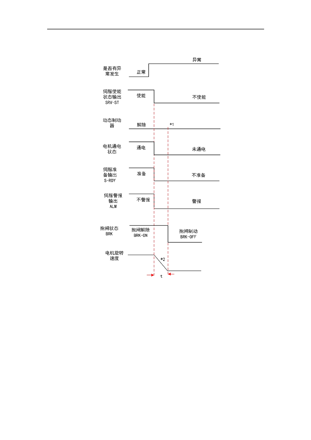 * 2.自由停机方式停机根据 PA5.10「伺服报警停机时序模式」的设定值决定。减速时间 t