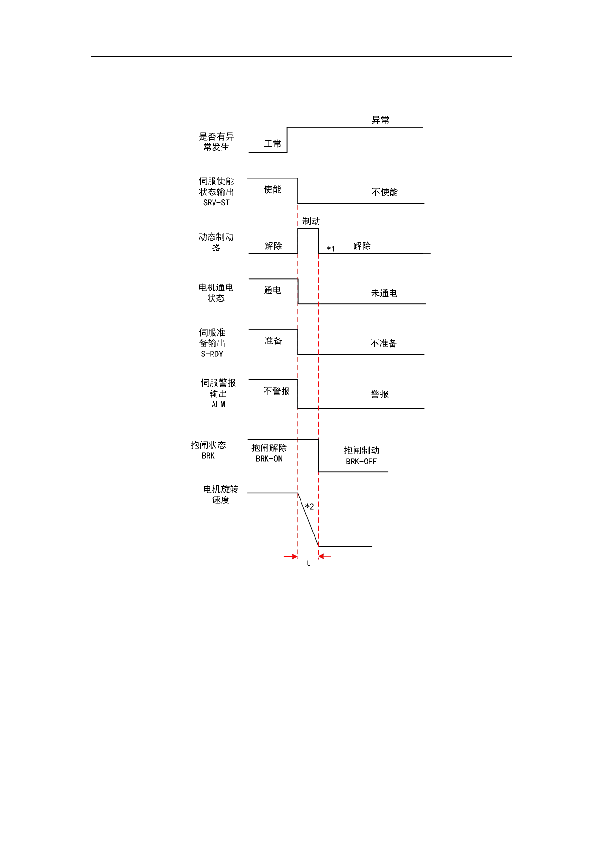 * 2.动态制动方式停机根据 PA5.10「伺服报警停机时序模式」的设定值决定。减速时间 t