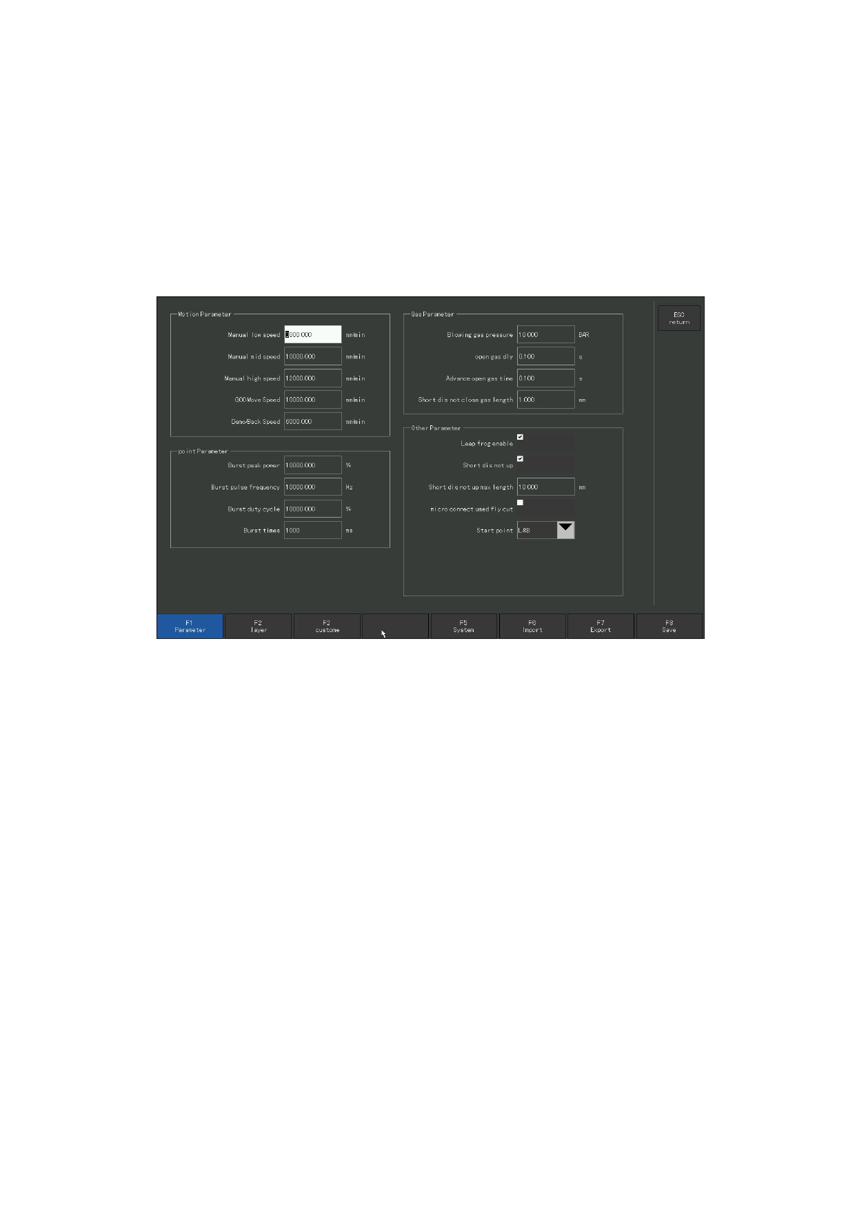 be adjusted. The cutting needs to be suspended and enter the parameter setting