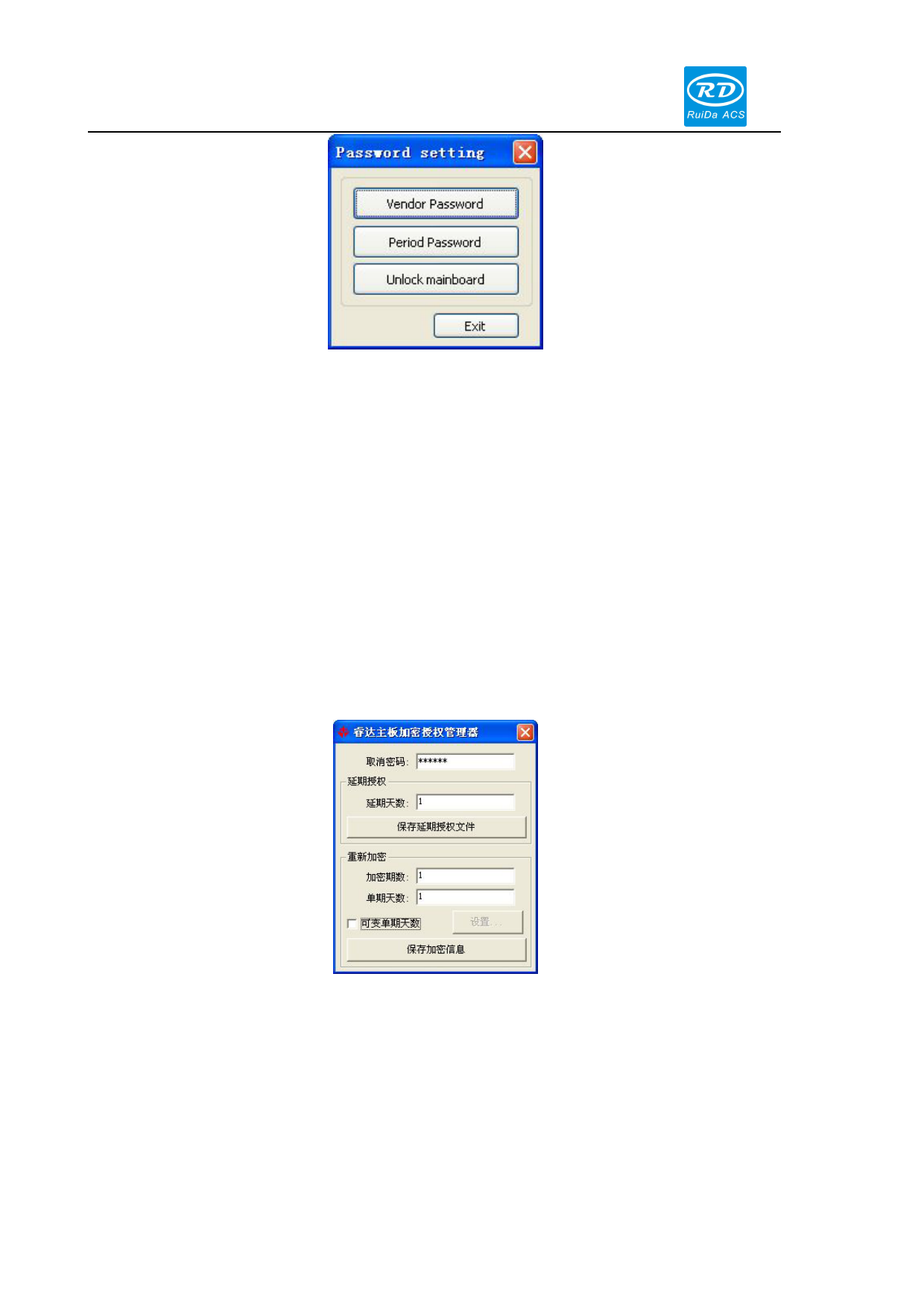 Input "Cancel password" and "Extended Days", then click “save the authorized extension