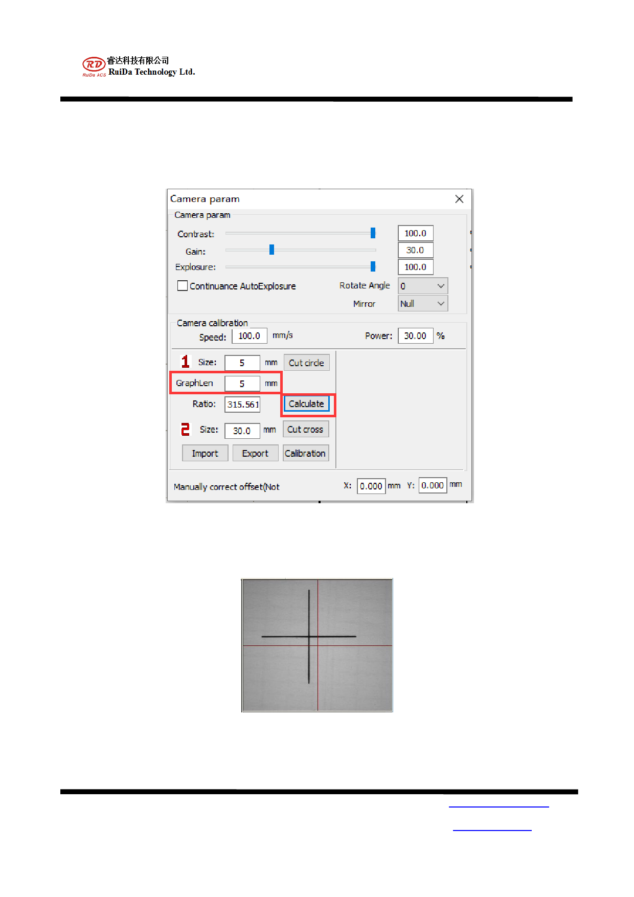 【Camera Distance Calibration】: Cut a cross, then move the camera view cross center to coincide with the cross