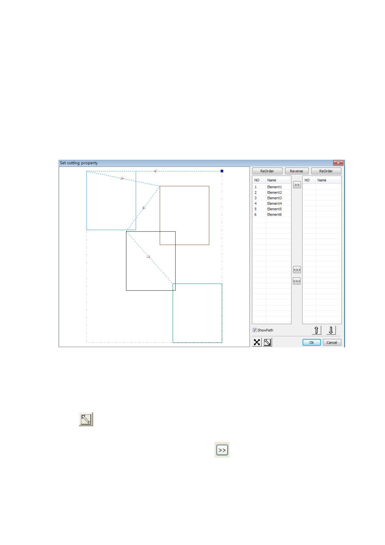 First check the “show path”, it will display the current graphics cutting order and the cutting
