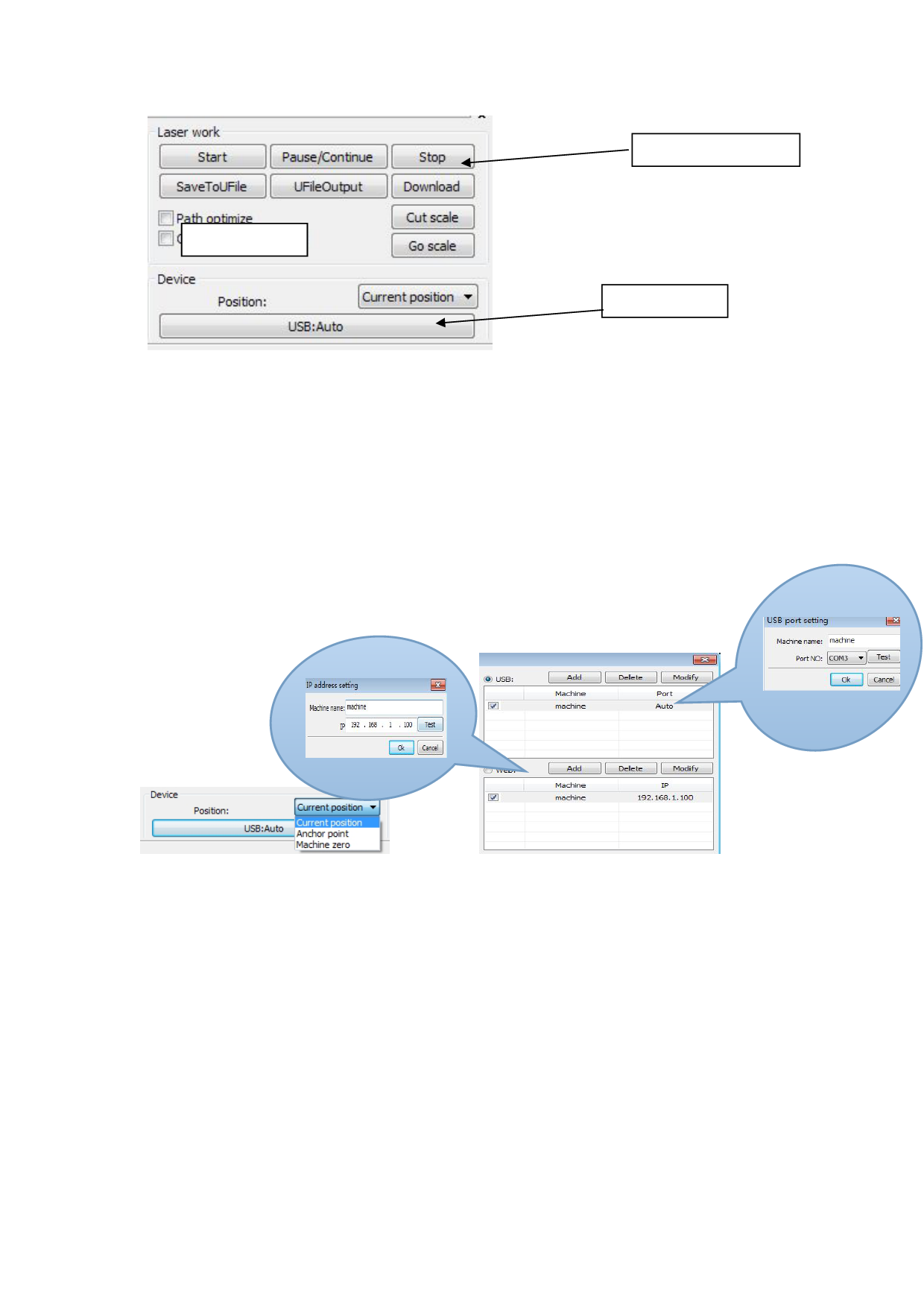 Network: If the computer is connected to laser device,click on the add ,enter to connect machine