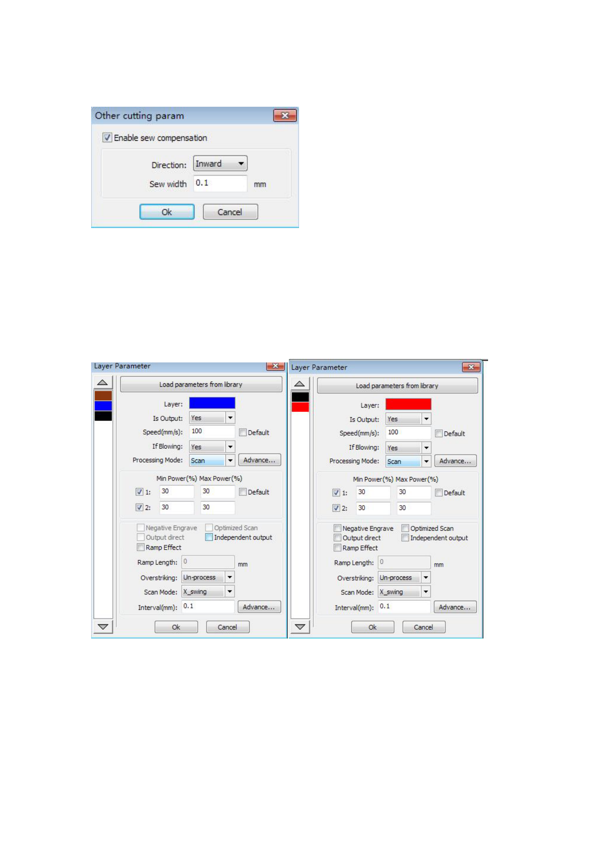 【Enable sew compensation】:Use seam width compensation can compensation caused by laser