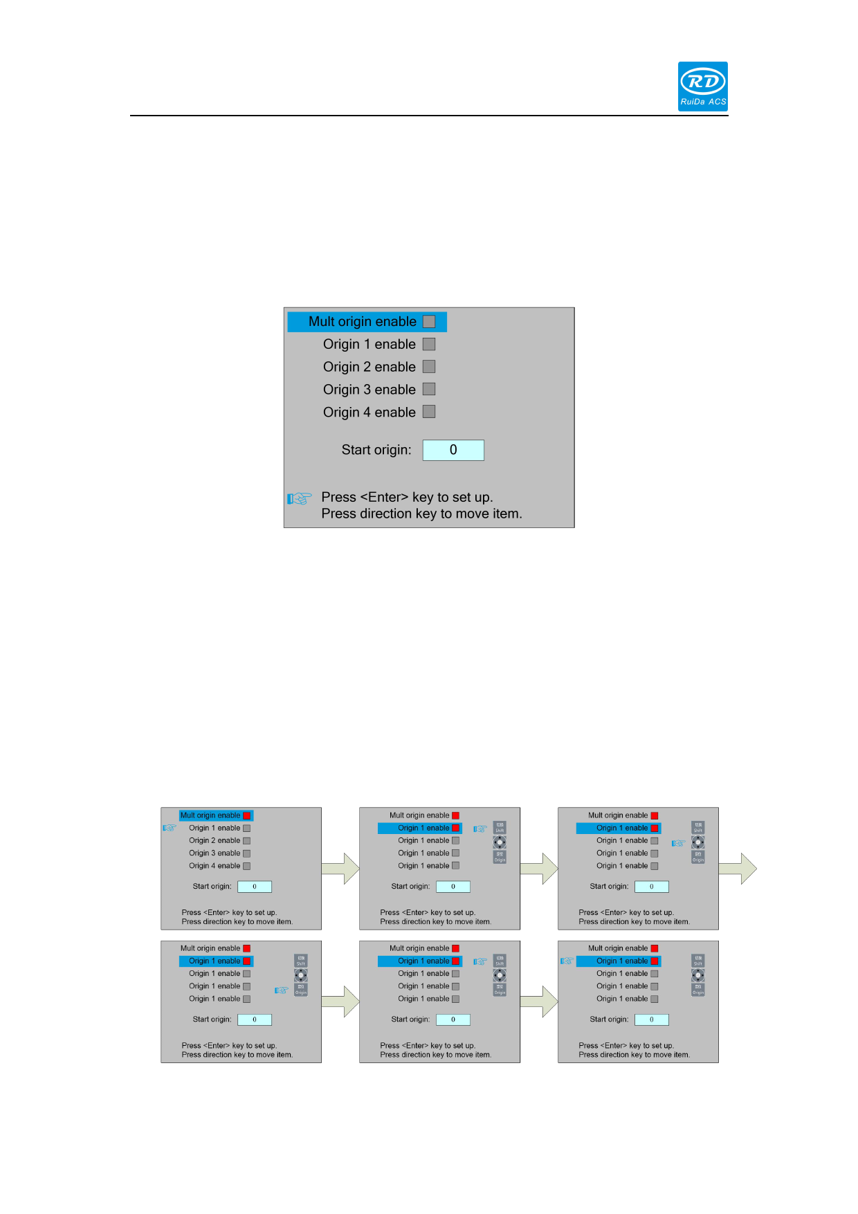 enabled), when enabled, the little finger to "Origin 1 enable" entry means to start