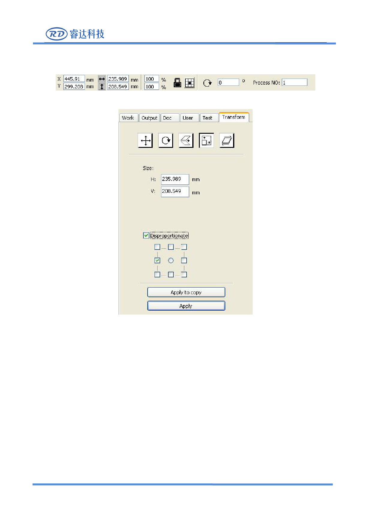 whether to lock the aspect ratio, and set the position relative to the object to transform.