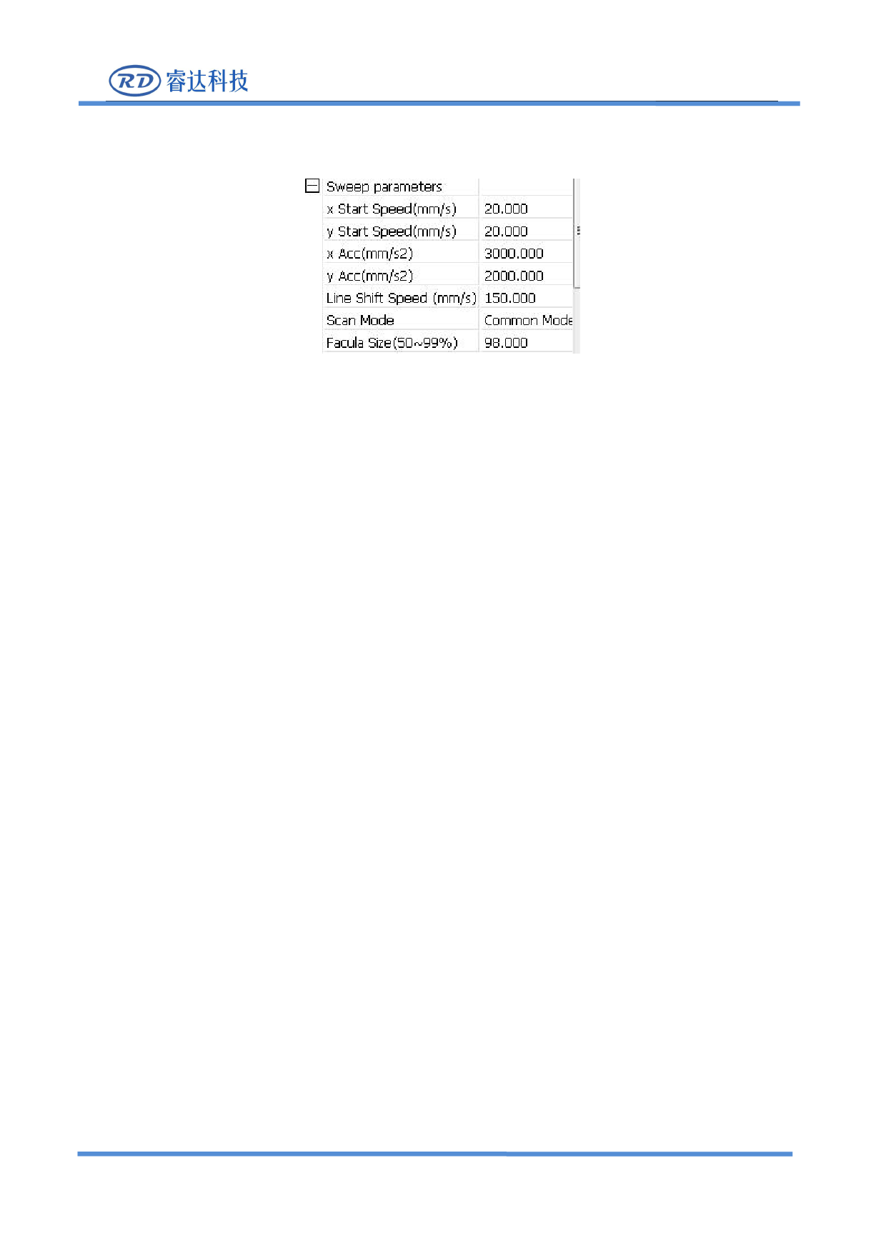 Line shift speed of scanning: this parameter is specially used to control the max. speed of the