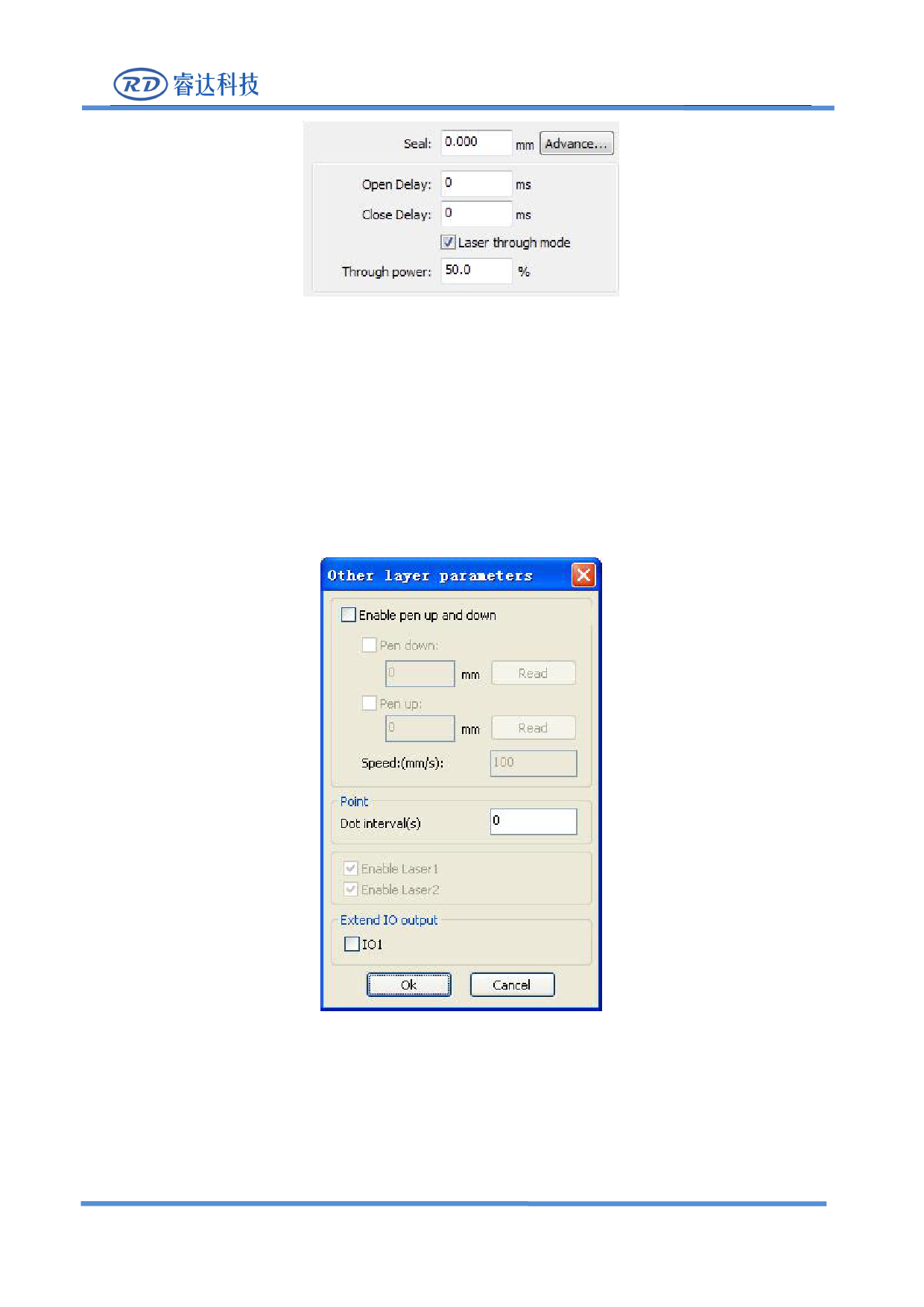 Laser through mode:If checked,the light switch delay said is on time,otherwise,the time delay switch