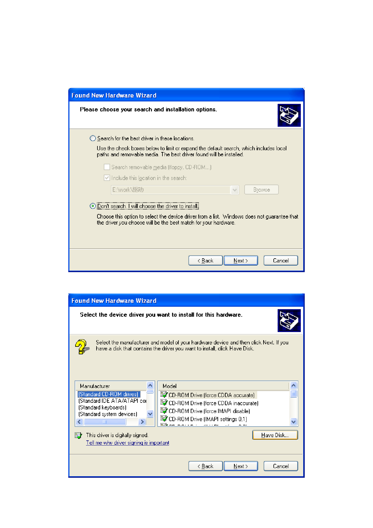 Select “Do not search, I will choose the driver to install” and then select Next.