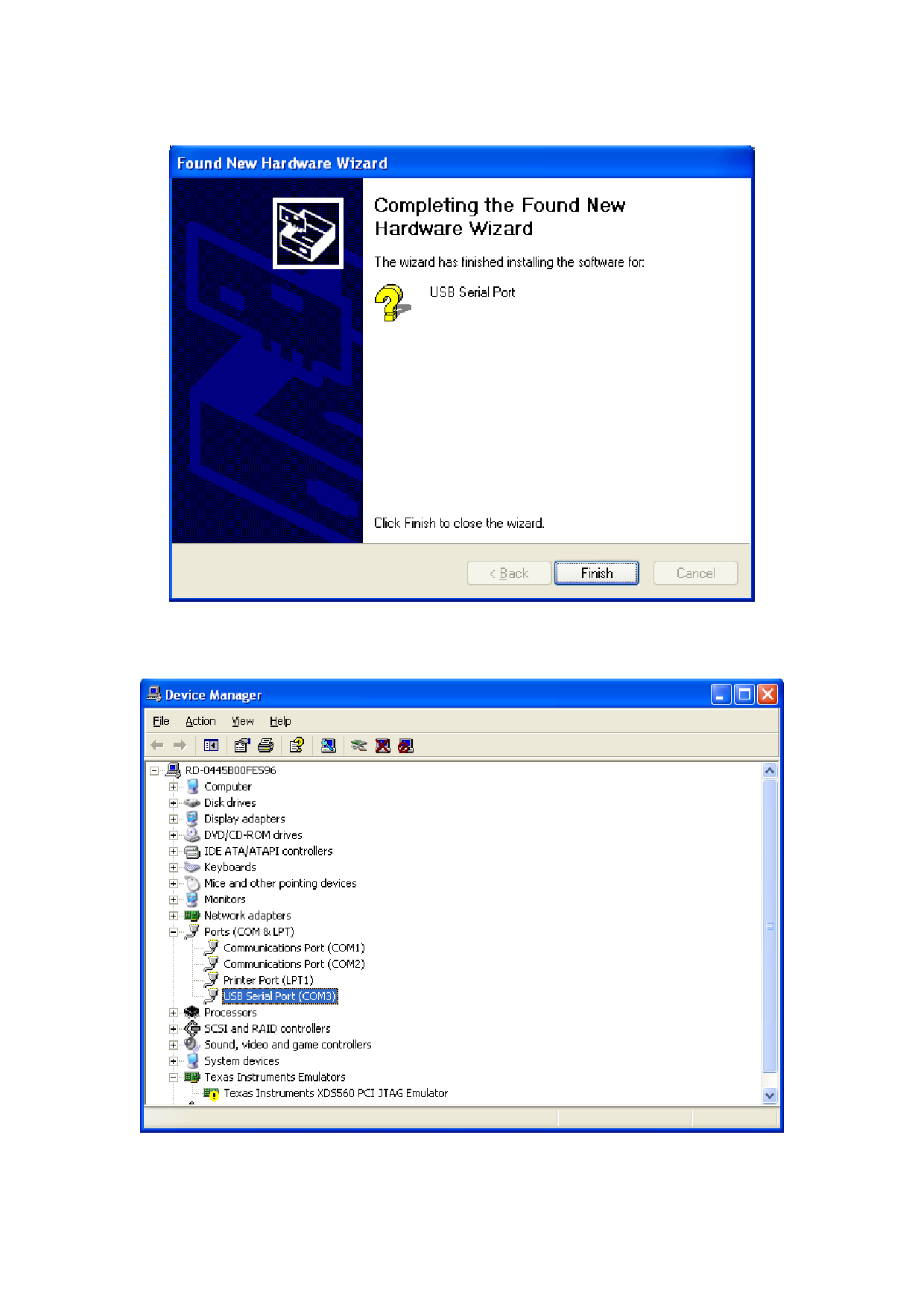View Device Manager once again. The port number of the COM appears in the