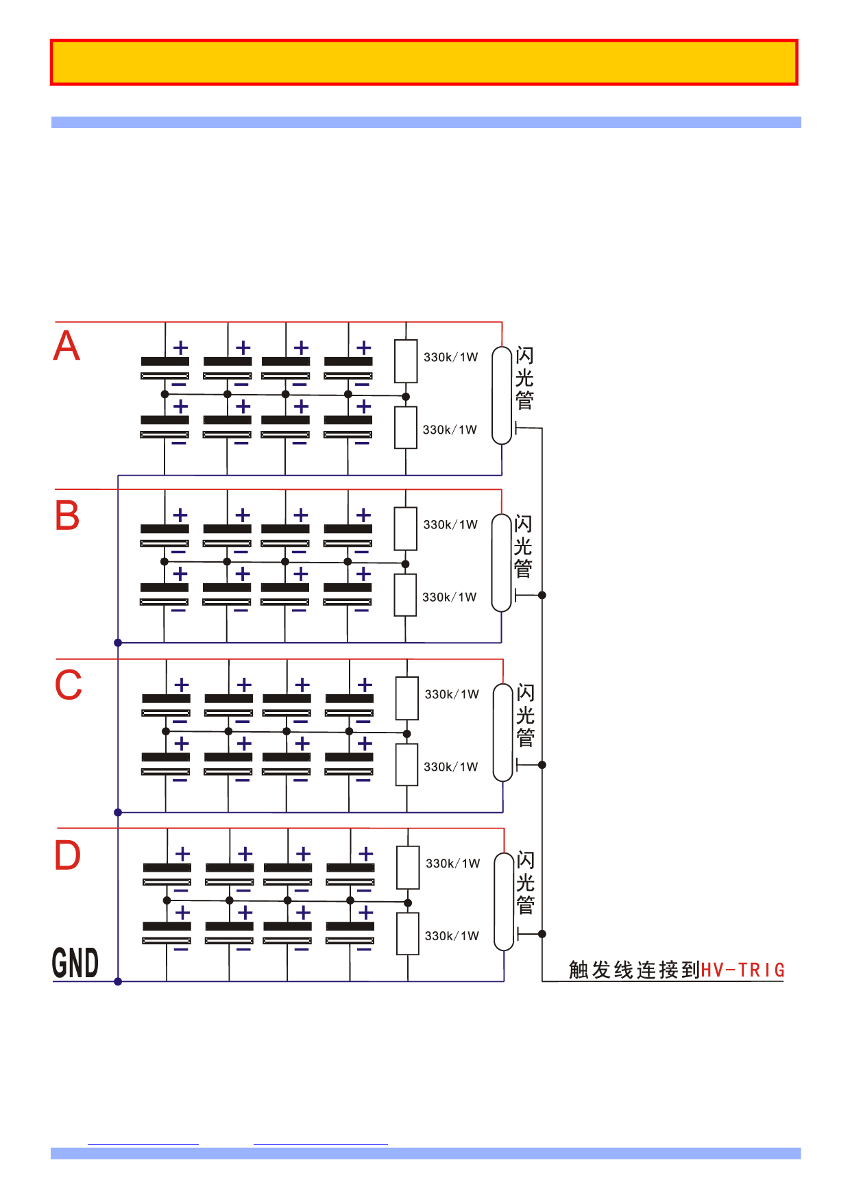 6、 储能电容组的安装:连接储能电容组的插座,有 A B C D GND 标志,可连接 4 路储能电容组,每组电容驱动