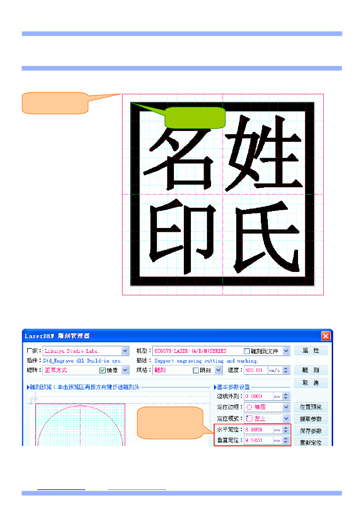 定位在版面区,所以在雕刻开