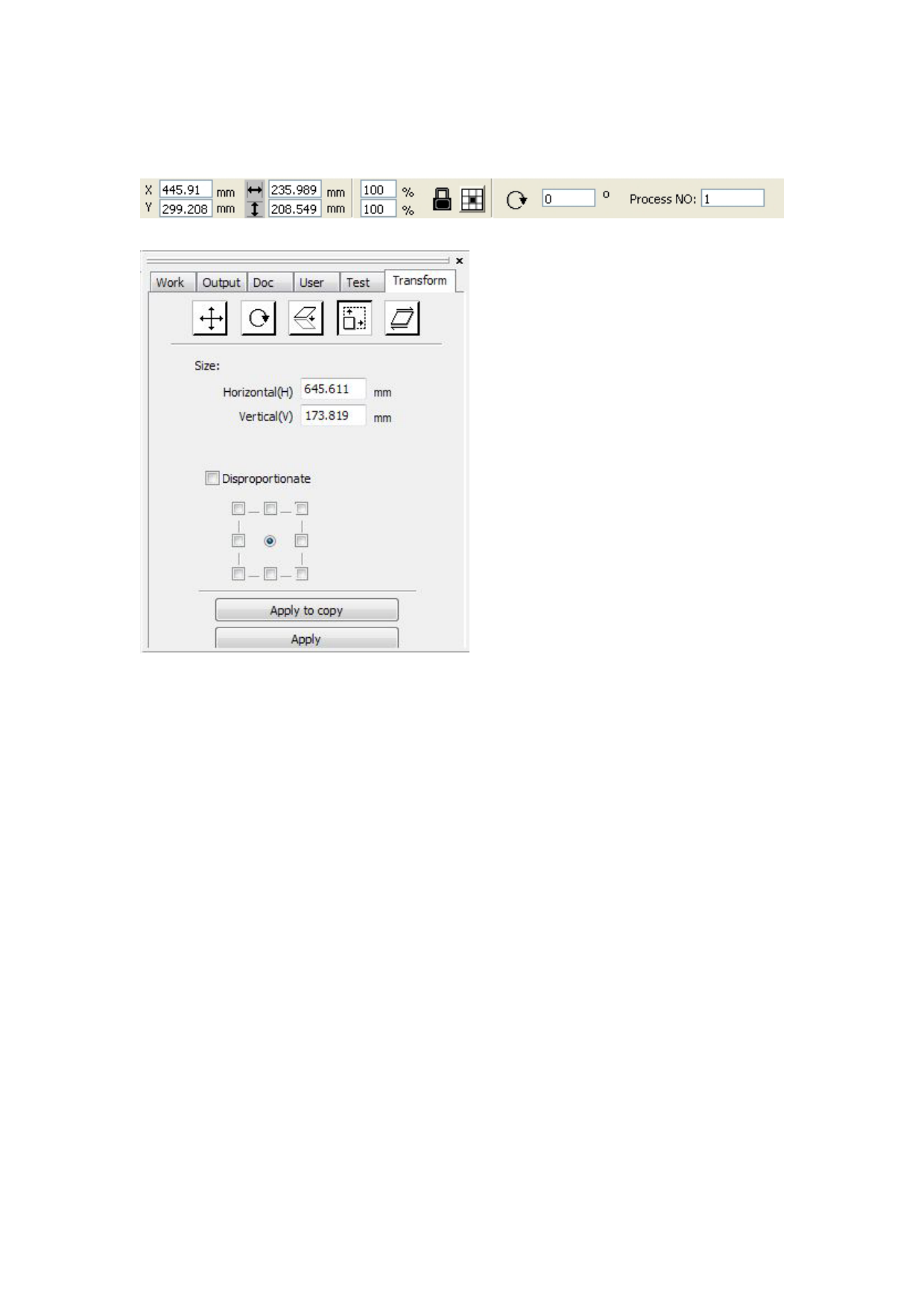 whether to lock the aspect ratio, and set the position relative to the object to transform.