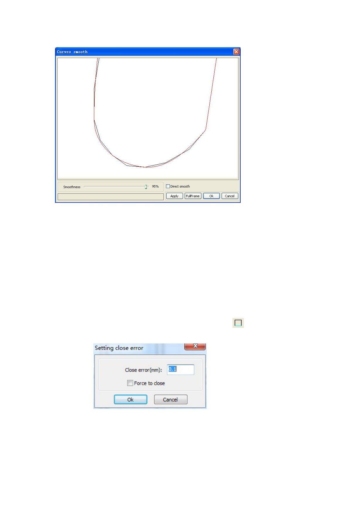 Click menu【Handle】->【Curve auto close】,or click System Bar