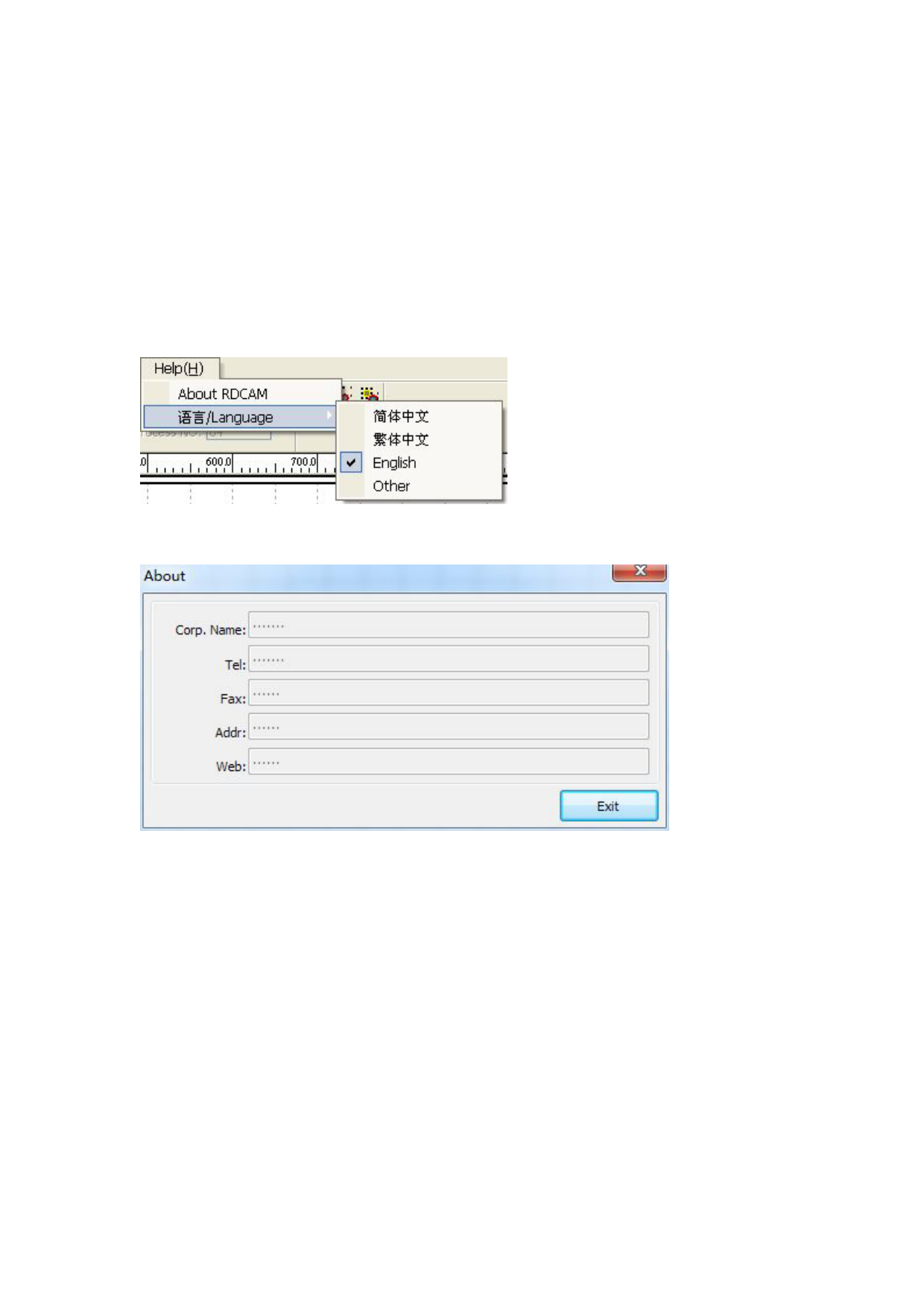 Bar【Help】->【About RDCAM】