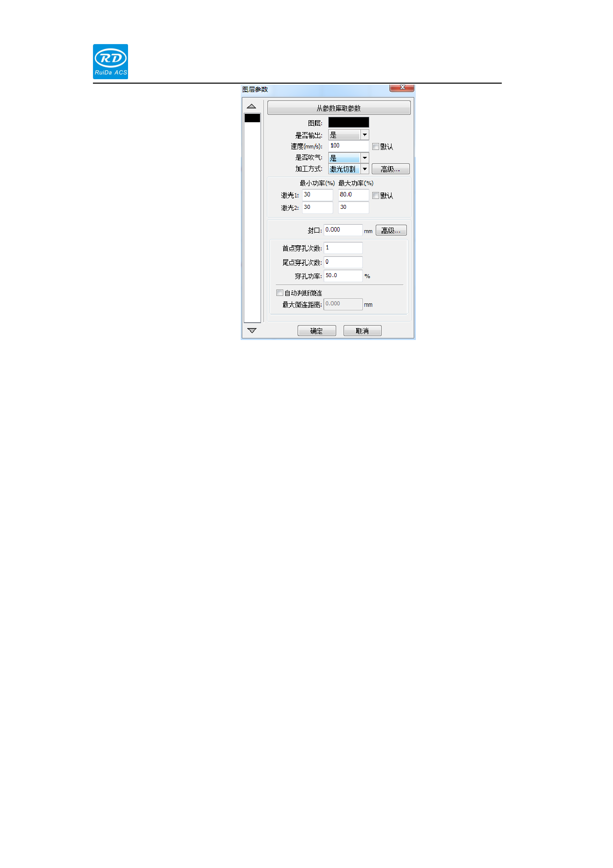 set the piercing mode in the user parameters and layer parameters.