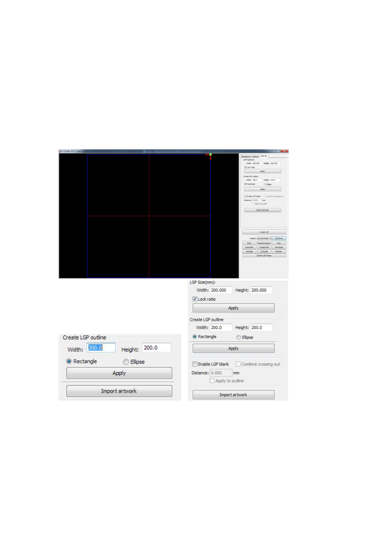 In the tool, the default created a 200 X200 rectangular guide tabula ras outline. The user can in the