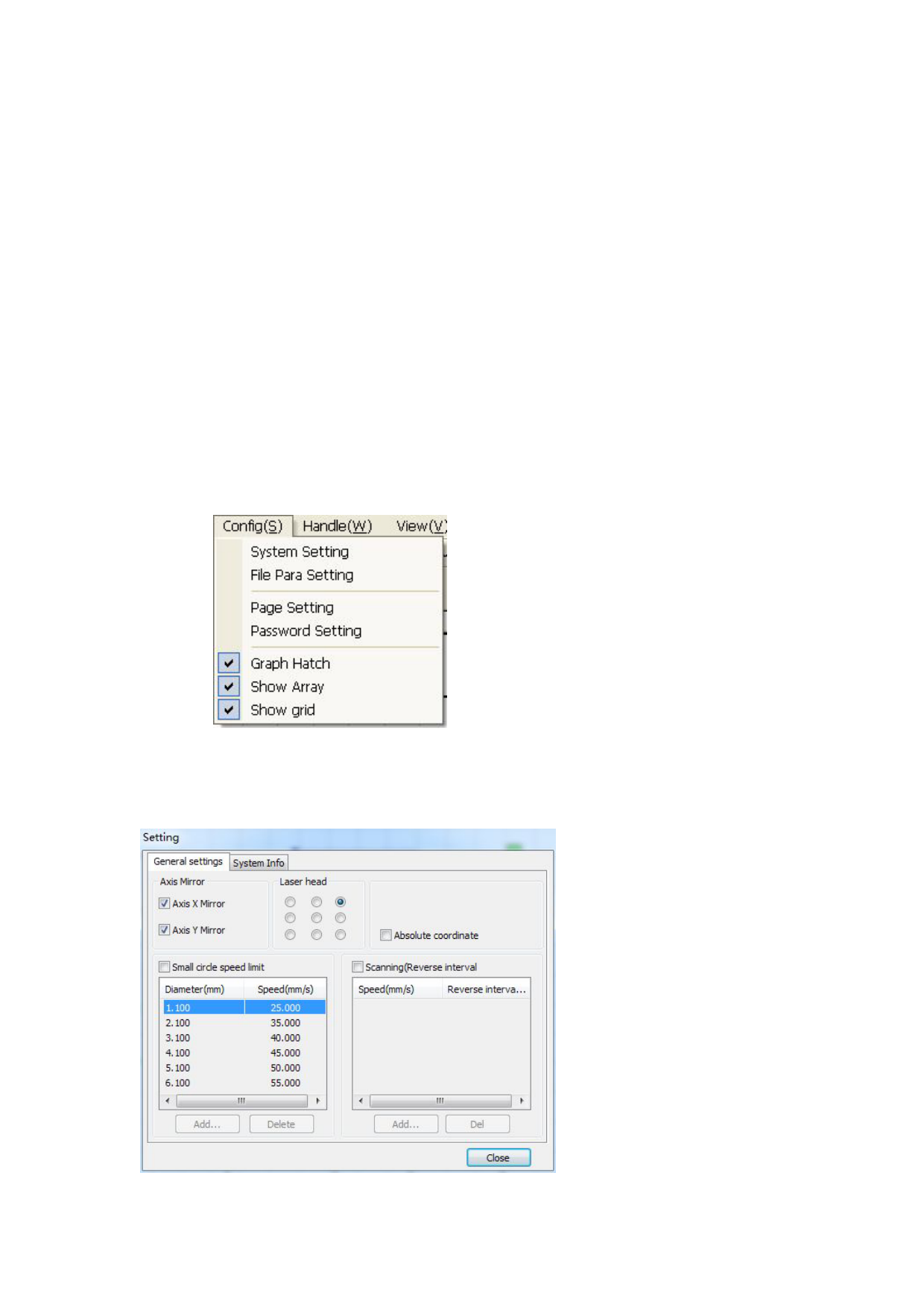 Before output graphics,required to determine whether the system settings are correct.Click menu