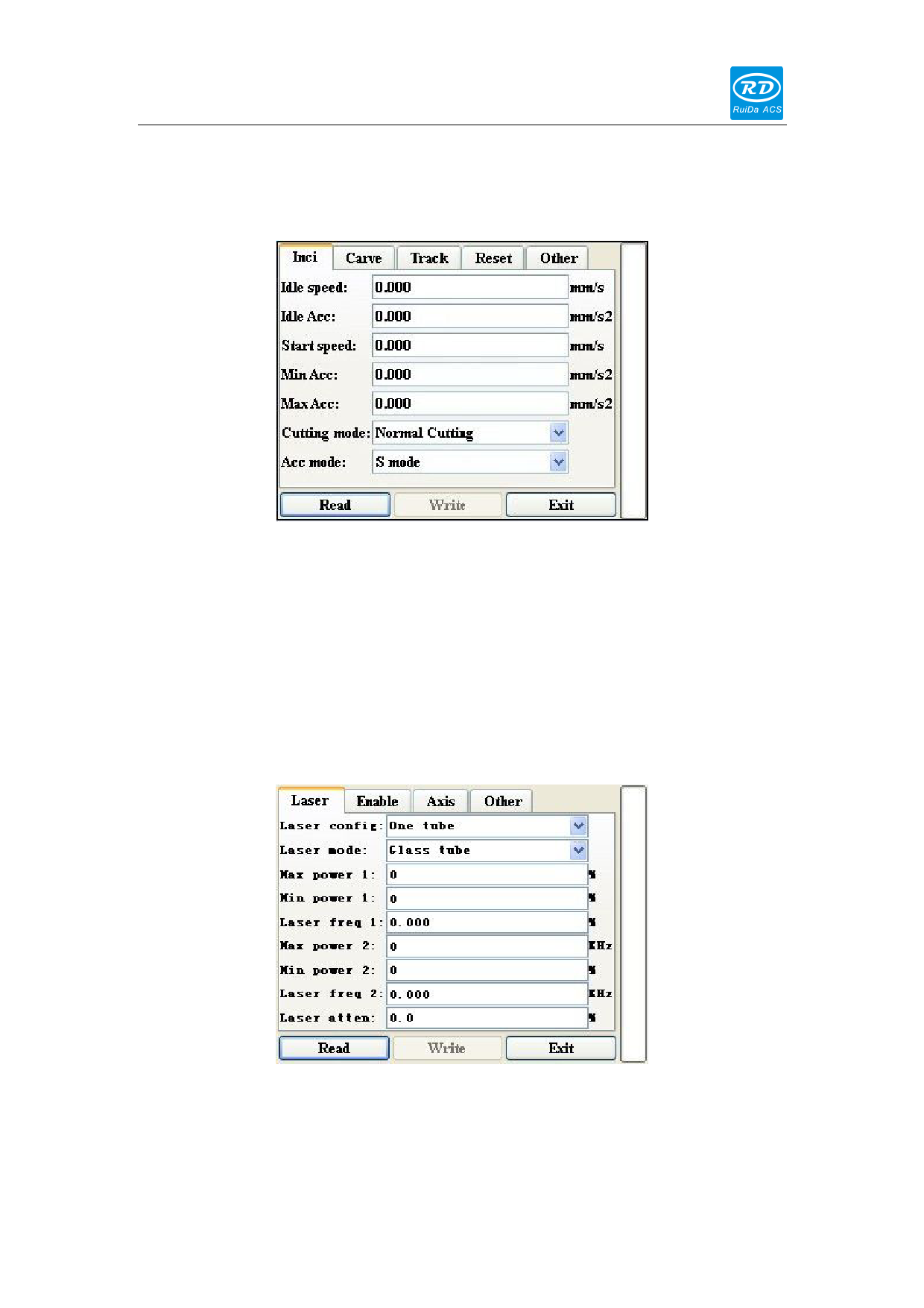 parameters. If some parameters are changed, then press “Write” button to save the new
