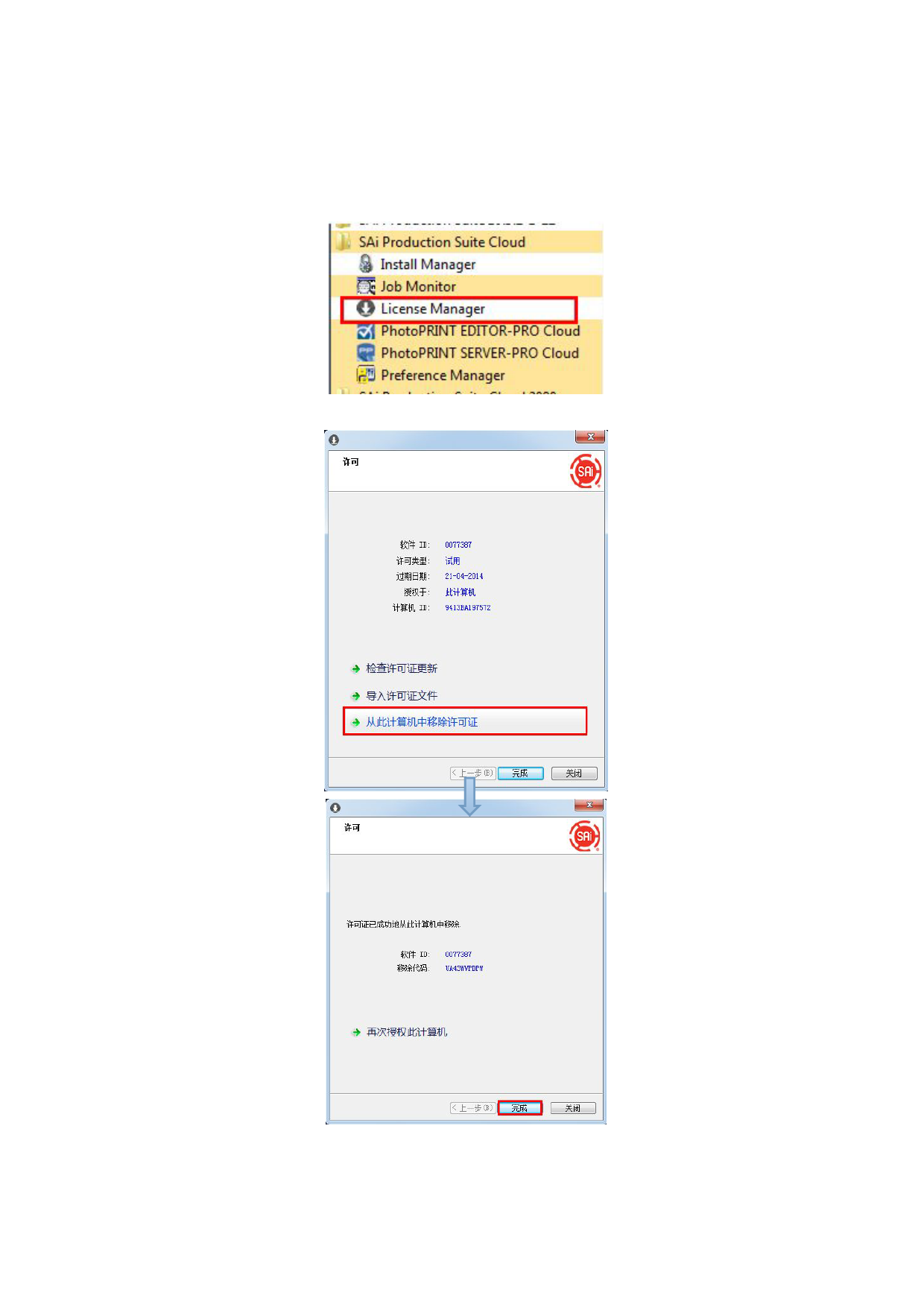 、在许可对话框中点击从此计算机中移除许可证,完成后即可以在别的电脑上安装软件。
