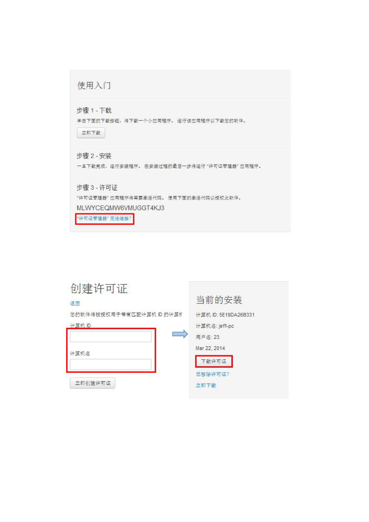 和计算机全名,点击立即创建许可证,然后点击下载许可
