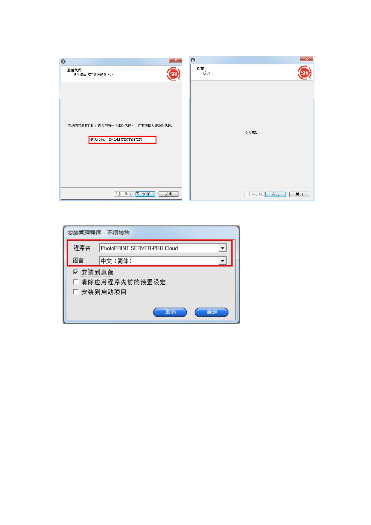 、在对话框中输入软件包装盒内的激活码并点击下一步,提示授权成功,点击完成。