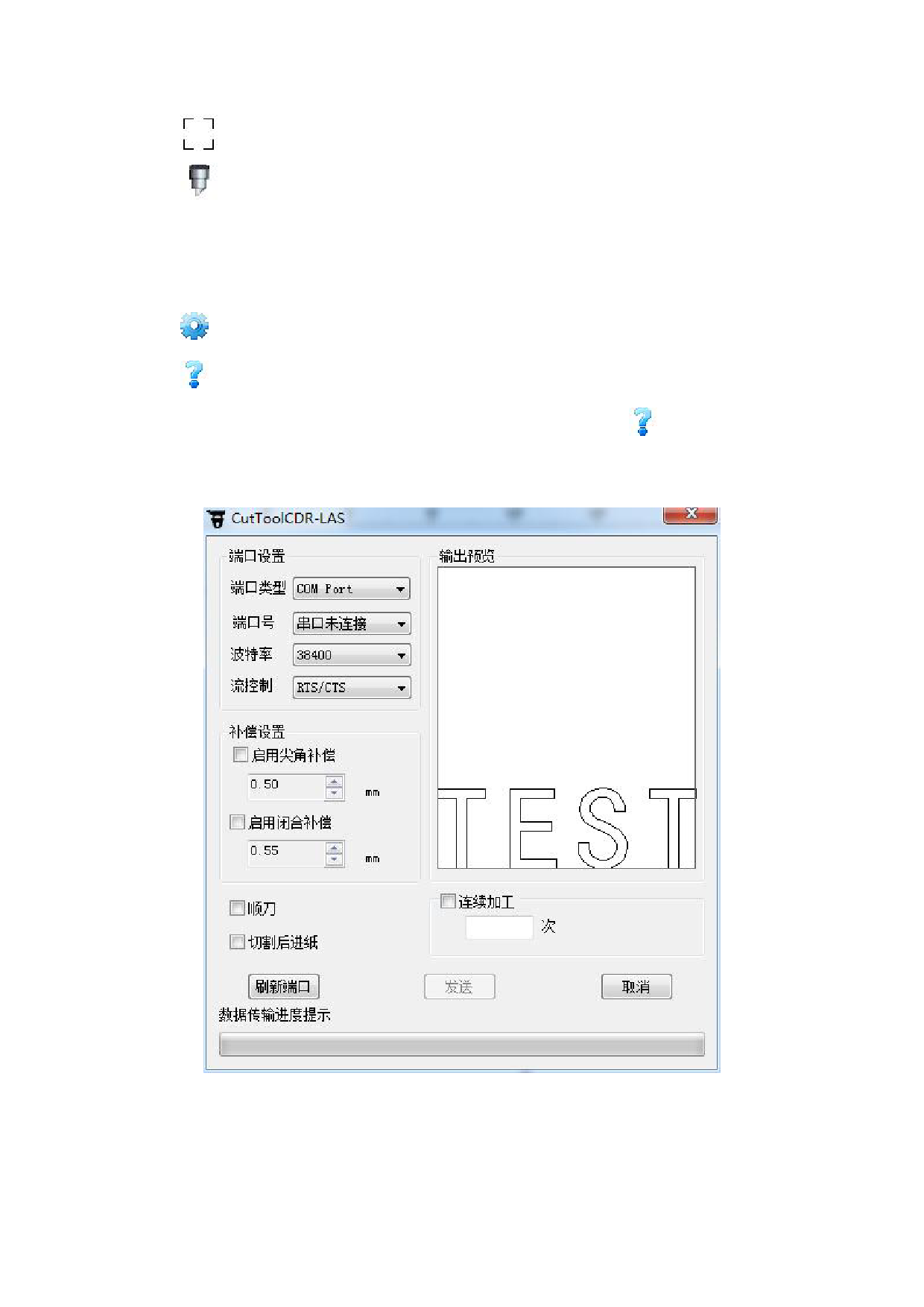 点击此图标设置刻字机参数;(当前版本无此功能,以安装的插件版本为准)