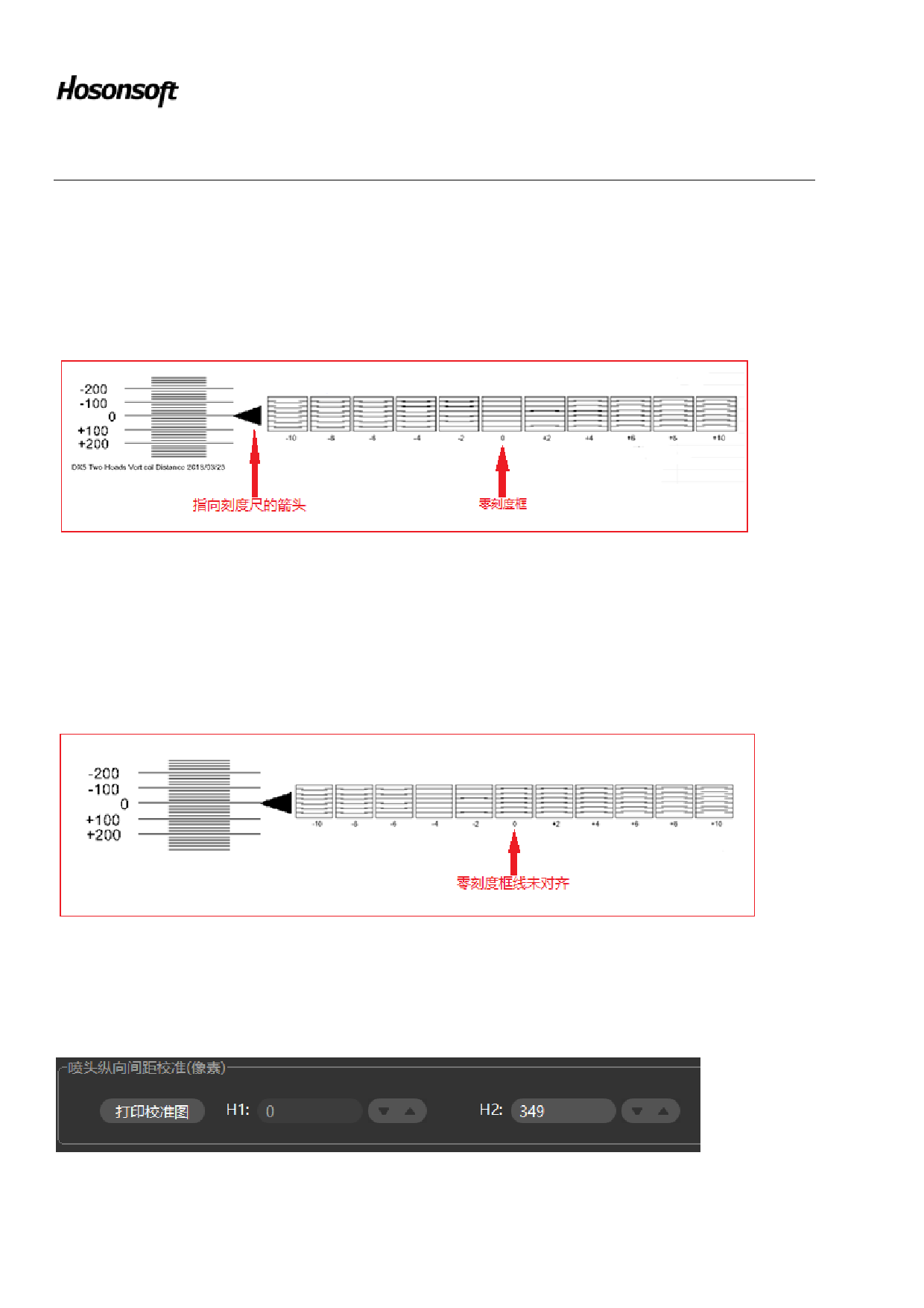 The figure above shows that the longitudinal distance between the print heads is normal. All the lines in the 0-point scale